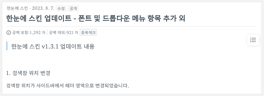 한눈에 스킨 v1.3.2 업데이트 내용